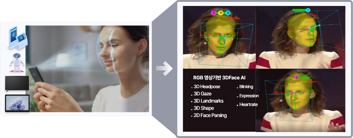 사용자의 위치, 동작 제약 없는 근거리 상호작용 환경에서의 얼굴의 복합적 상호작용 정보 수집 가능