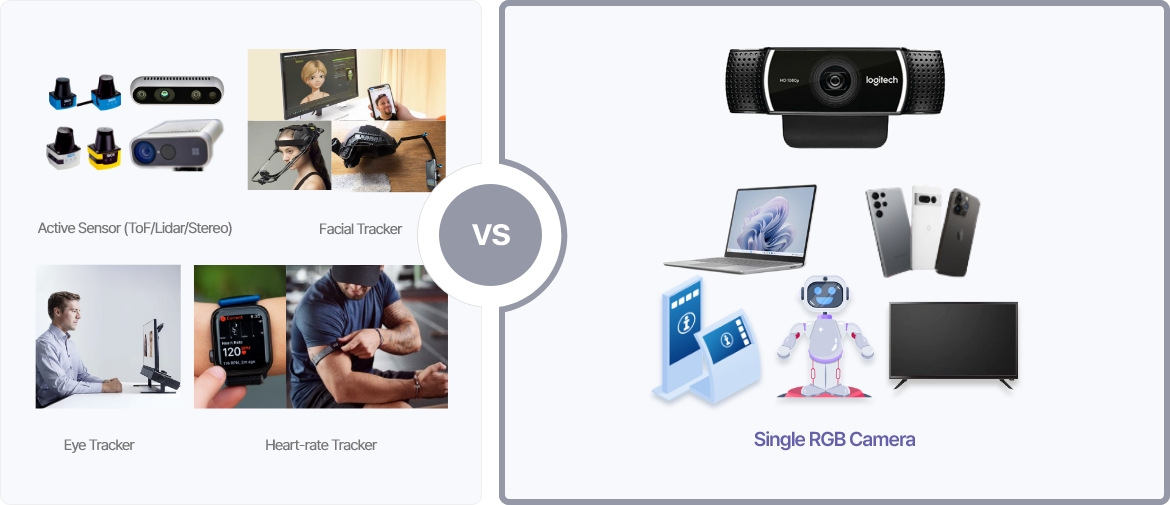 LiDAR, ToF 같은 고가의 Active 방식 센서 의존성 → Single RGB 카메라로 대체 가능